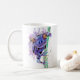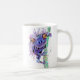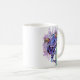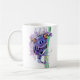 acuarela tradicional y arte de tinta de una rana morada que sube a un árbol mientras mira al espectador en una taza de café