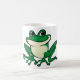 Una rana verde de mirada agradable que mira fijamente con los ojos grandes. Este diseño parece realmente eficaz en esta taza