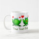 Felices ranas verdes personalizados, impresión a doble cara, corazones de amor rojos, arte original lindo. Una parte de los ingresos se destina a apoyar la conservación de los humedales y la sensibilización ambiental. Puedes agregar tu mensaje a ambos lados de esta taza. Puedes poner un mensaje diferente en cada lado si quieres. Asegúrese de cambiar el texto en ambos cuadros de texto. Utilice la opción personalizar para cambiar el tamaño, estilo o color de la fuente. Incluso puede reemplazar una o ambas imágenes.