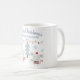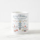 Este tazón de café de Navidades festivos presenta un bonito tema de bosque de invierno. Una imagen de dos ratoncitos retratados de pie junto a un árbol de Navidad, bajo luces de colores y copos de nieve. Se imprime un saludo de "Feliz Navidad" en la parte superior, seguido de un ejemplo de apellido. Puede personalizar la taza para incluir su propio nombre o texto personalizado.
