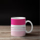 Este moderno tazón de café presenta un diseño colorido con rayas rosas y blancas. Personalízalo con tu nombre en la parte inferior.