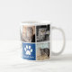 Esta hermosa jarra fotográfica mascota está personalizada con adorables imágenes de tu dulce gato. Personalizar este regalo de moda con tus propias fotos de gatitos personalizados alrededor de una fresca plaza azul con una linda huella de pata blanca y el nombre de tu gatito macho en el centro.