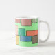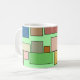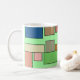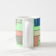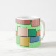 Esta taza tiene un diseño boho y moderno de rectángulos adheridos a líneas horizontales de varios tamaños y colores boho.