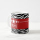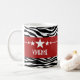 Moderno y moderno Sassy Star Zebra Mug con un fondo de moda de cebra en blanco y negro y un atrevido borde rojo adornado con un divertido motivo estrella. Este diseño ondulado puede ser personalizado con el texto personalizado de su elección. Haga clic en "Personalizar" para encontrar más opciones de personalización.