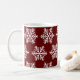 Embrace cozy winter vibes with this festive coffee mug featuring a seamless white snowflake pattern on a rich red background. Perfect for sipping hot cocoa, tea, or coffee throughout the holiday season. A classic and stylish gift idea for Christmas lovers, snowflake fans, or winter décor enthusiasts.