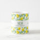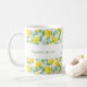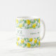Una taza decorada con un patrón de limón. Texto: Aprieta el día. Personalice y agregue sus iniciales y nombre de monograma.