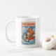 Reel Drama features a classic hero fisherman landing a huge shark as he flexes his skills in his fishing boat. Bold retro colors with poster art vibes and pure confidence make this perfect for guys who always make catching the big fish look easy. Add nautical swagger to your caffeine routine with this humorous angler art coffee mug.
