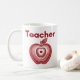Un diseño moderno para maestros que presenta una manzana roja en capas con detalles de anillos concéntricos y un título de Maestro en negrita en tipografía roja. La composición centrada crea un aspecto calmado y equilibrado que destaca en una taza blanca. Un regalo considerado para educadores, nuevos graduados o cualquier persona orgullosa de la profesión docente