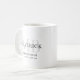 Esta elegante taza de café para los padrinos con monograma presenta los nombres de los padrinos, iniciales, título y fecha escritos en una tipografía minimalista gris y de moda. Simplemente agregue los nombres de los padrinos, sus iniciales, título y fecha en la sección personalizar para crear su propia taza de café de boda. Aunque se muestra aquí como un regalo para los padrinos, personalice fácilmente la sección del título para el novio, el padrino, el padre del novio y el padre de la novia. Gran idea de regalo personalizado para su fiesta de boda.