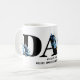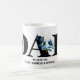Regalo para papá con niños Nombres de café Mug creado por szdesign. Es un regalo único que celebra el amor eterno dentro del círculo familiar. El diseño se basa en colores blanco y negro con un toque de flores. Accent está en letras grandes DAD y nombres de niños debajo La taza de café se puede personalizar fácilmente con tus nombres y hacerlo una moderna pieza personalizada. Pulse el botón 'PERSONALIZAR' para iniciar el proceso.