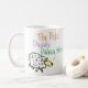 Mug por el mejor papá. Divertido personalizado de una oveja en la cima de una colina. La oveja dice "Mejor papá Baaa Ninguno". El diseño se repite en ambos lados