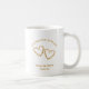 Agrega los nombres de la pareja a esta elegante taza de aniversario de bodas de 10 años dorada. La escritura simple y moderna de color dorado no es de lámina real sino de oro falso. Toda la tipografía elegante es editable. Personaliza esta taza de café moderna con los nombres de la pareja y la fecha de aniversario de bodas para un hermoso regalo de aniversario de bodas. "Celebrando 10 años" se puede personalizar a cualquier número para un aniversario de 60, 50, 25 años o cualquier otro año. Creé estos corazones dibujados a mano para su regalo de aniversario de bodas de 10 años. Los dos corazones dorados cobrizos únicos creados con impresiones de hojas y brotes, añaden un toque botánico romántico. La mesa de la fiesta de aniversario de 10 años dorada se vería genial con estos vasos conmemorativos y mis servilletas y posavasos con corazón dorado. Explora mi colección para