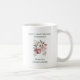 Cita romántica mauve Boda floral Aniversario Regalo Café Mug para cónyuge... Un lado de nuestro tazón de café con recuerdos florales muestra a rosas color agua, rubor y borgoña por encima de este romántico dicho: "La luz que usted brilla sobre mi vida brilla con cada año que pasa". El texto de ejemplo al otro lado de la taza bordea un ramo floral de coordinación y dice: "Feliz Aniversario, Stephanie", "Todo mi amor", "Christopher". Este texto se puede revisar fácilmente en la plantilla de personalización. Parte de nuestra Colección Romántica del Aniversario del Boda con diseños coordinados para tarjetas y regalos para su esposo o esposa. Cita original de Barbara Casey