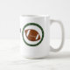 Un diseño fresco con un futbolín de cuero en el centro de un círculo verde oscuro acentuado por líneas blancas. El dicho puede cambiarse como se desee.