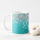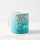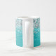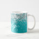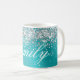 Girly faux brillante purpurina de plata en un gráfico de arte digital de Relieve metalizado de estilo metálico azul acuático. Personalizar el elegante estilo clásico del tipo de letra de caligrafía, tamaño, color y sombra de caída para crear tu propia taza de café. Una caligrafía clásica y elegante sobre arte digital moderno que imprime como una foto.