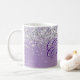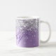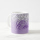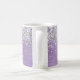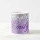 Girly faux brillante purpurina de plata en un Relieve metalizado de arte digital de estilo mediterráneo ligero de color púrpura. Personalizar el elegante estilo clásico del tipo de letra de caligrafía, tamaño, color y sombra de caída para crear tu propia taza de café. Una caligrafía clásica y elegante sobre arte digital moderno que imprime como una foto.