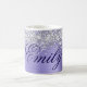 Girly faux brillante purpurina plateado sobre un gráfico de arte digital de Relieve metalizado de estilo metálico púrpura azulado periwinkle. Personalizar el elegante estilo clásico del tipo de letra de caligrafía, tamaño, color y sombra de caída para crear tu propia taza de café. Una caligrafía clásica y elegante sobre arte digital moderno que imprime como una foto.
