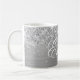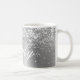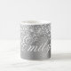 Girly imita a un purpurina brillante de plata en un gráfico de arte digital de Relieve metalizado de estilo metálico gris claro. Personalizar el elegante estilo clásico del tipo de letra de caligrafía, tamaño, color y sombra de caída para crear tu propia taza de café. Una caligrafía clásica y elegante sobre arte digital moderno que imprime como una foto.
