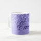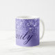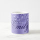 Girly faux brillante periwinkle purpurina en un gráfico de arte digital de estilo Relieve metalizado de color morado azul metálico. Personalizar el elegante estilo clásico del tipo de letra de caligrafía, tamaño, color y sombra de caída para crear tu propia taza de café. Una caligrafía clásica y elegante sobre arte digital moderno que imprime como una foto.