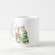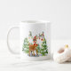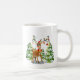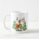 Rindeo en la nieve con árboles y adornos colgados de sus cuernos