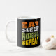 ¡Coman la taza de piquetes de sueño de repetición", el regalo perfecto para los aficionados al pickleball que viven y respiran el juego! La taza está diseñada para mostrar tu amor por el pickleball. El diseño vibrante declara audazmente su dedicación al deporte con el lema lúdico "Eat Sleep Pickleball Repeat".