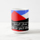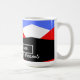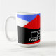 Minimalista Diseño moderno con colorido arte abstracto y estético en azul azul rojo negro y blanco decorado en un patrón de triángulos geométricos para una mirada elegante y elegante en un tazón de café personalizable que es fácil de editar para que puedas escribir tu nombre y tus palabras inspiradoras favoritas y motivacionales para ayudarte a empezar bien tu día con un café agradable y palabras motivacionales para un buen día productivo