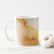 Este elegante tazón de café está decorado con un arte abstracto moderno. El arte original es la tinta de alcohol en tonos salmón de melocotón, amatista, lavanda y bronce dorado. Edite fácilmente la plantilla con el nombre deseado. Vea nuestra colección para más elegantes artículos de tinta para alcohol, regalos e ideas de papelería. Resumen De Boho Personalizado Coffee Mug.