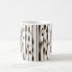 Este tazón de café presenta un diseño abstracto moderno y elegante caracterizado por gotas verticales alargadas y rayas en tonos marrones sobre un fondo blanco limpio. El patrón es visualmente dinámico, evocando un sentido de fluidez y sofisticación. El texto personalizado se incorpora al diseño, apareciendo de forma prominente verticalmente en dos áreas, lo que lo hace perfecto para agregar un nombre, mensaje o cita personalizados. La contraste de la tipografía marrón complementa las obras de arte, realzando la elegante estética del tag. Ideal para los amantes del café que aprecian la bebida artística personalizada.
