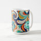 El diseño abstracto inspirado en los años 60 aporta un toque moderno al estilo dinámico de la era hippie con sus formas lúdicas y su atrevida paleta de turquesa, amarillo dorado y azul marino. La colorida composición captura la esencia de los patrones psicodélicos modernos. Este diseño de taza de café puede ser personalizado fácilmente para adaptarse a su estilo único usando la plantilla suministrada. Pruebe la práctica opción de transferencia de Zazzle o busque ID1069 para ver patrones y productos adicionales en este conjunto de diseño. Nota: patrón adaptado a partir del contenido generativo.