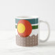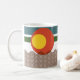 Esta taza tiene un diseño moderno de mediados de siglo de líneas onduladas horizontales con dos círculos y dos bandas anchas horizontales. ¿Quieres colores diferentes? Mándame un mensaje.