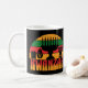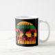 Retro 60-70 siente Kwanzaa con un Kinara, taza de unidad, maíz y regalo en oro, verde, rojo y negro.