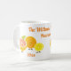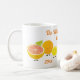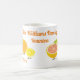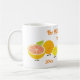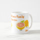 Una taza de reunión familiar con una familia de sonrientes personajes de cítricos. Esta taza es un placer para que tu familia se lleve a casa de tu reunión familiar.