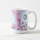 Pastel blue and pink baroque mug with vintage drapes, gold mirrors, and romantic interior design — perfect for morning coffee or tea.