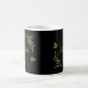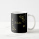 Taza de café única y simple que presenta flores y mariposas doradas románticas y elegantes sobre fondo negro