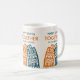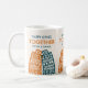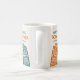 Taza feliz de vivir juntos con edificios de ciudad estilo retro de dibujos animados.