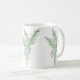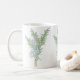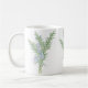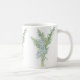 Taza de café de cerámica con una ilustración dibujada a mano de una planta de romero en flor. Obra de arte: Lápiz de color con pluma y tinta. ©2015 Dominic A. White.