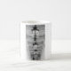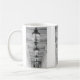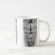 A white ceramic mug featuring a classic black symmetrical inkblot design, reminiscent of a Rorschach psychological test.