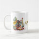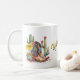 tazas de recuerdo de bonito Texas con gráficos de botas de vaquera coloridas, cactus y rosas amarillas. El texto, en la parte delantera de la taza, dice: Rosa Amarilla de Texas, y puede ser personalizado para leer lo que quieras.