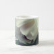 Rosa blanca suave y delicada con unas gotas de lluvia aferradas para alegrar tu próxima taza de café o té.
