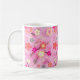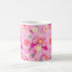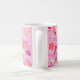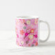taza de café clásica en una impresión dulce de la flor de cerezo en rosas y coral del caramelo.