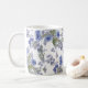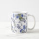 Taza De Café Rosas azul acuarela flores plumas blancas