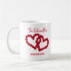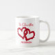 Personaliza esta taza de café con su nuevo apellido pronto. Corazones hechos con rosas rojas es el diseño en esta taza de café de regalo de compromiso. Un gran regalo para la futura Sra.