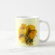 Esta encantadora taza presenta una composición de vida quieta de exquisitos rosas secos sobre un fondo amarillo. Los pétalos varían en color desde amarillo pálido hasta oro hasta albaricoque naranja profundo. La imagen se repite en los lados derecho e izquierdo.