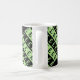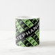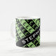 Este diseño de la jarra presenta un patrón de símbolos de la libra negra (£) dentro de las rayas verdes y símbolos de la libra verde (£) dentro de las rayas negras. Podría hacer un gran regalo para alguien que trabaja en el sector financiero (como un contable, un inversor, un operador de cambio de divisas, o en el sector bancario), o quizás para alguien que tenga interés en cobrar billetes y monedas monetarios. También presenta un nombre de personalizable en texto de color blanco dentro de un área de color oscuro, con ambos en ángulo. [~Z0000051]