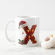 This letter 'X' is special because it combines rustic, warm wood texture with the cozy charm of traditional holiday decorations. The chunky red wooden letter, draped with glowing string lights, and topped with a Santa hat and holly creates a warm, inviting visual. It is perfect for holiday announcements, rustic farmhouse decor, or festive graphic design.