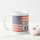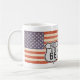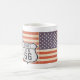La señal de la ruta 66 y el fondo de la bandera estadounidense crean un icono en Estados Unidos. El diseño de la Ruta 66 es una fotografía de la señal real de la carretera