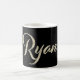 Eine sehr schöne edle personalisierte Tasse / Kaffeetasse / Teetasse im whitegold Lettering Look auf schwarz für Ryan.