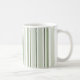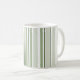 This classy mug is perfect for year-round. Vertical stripes, in varying widths, alternate white with light, medium, and dark shades of sage green.
