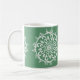 Esta mandala blanca se asienta sobre un fondo gris-verde. Los colores son naturales y relajantes. Parte de la colección Payon Mandala.