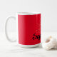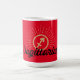 La taza de café con temática zodiaca presenta un símbolo de astrología Sagittarius acentuado con estallido de oro con texto negro sobre fondo rojo
